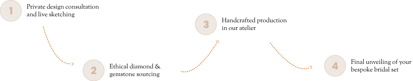 We don’t offer pre-made sets. Instead, we design your jewellery from the ground up, turning your